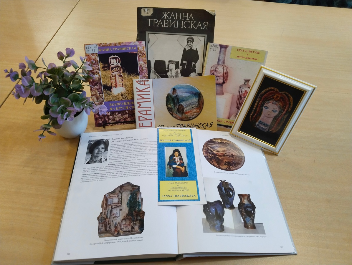 На выставке представлена: автобиографическая повесть Жанны Травинской «Возвращение на круги своя» (Орел, 2009), книга «Сказки детства» (Орел, 1997), «Керамика – любовь моя».
