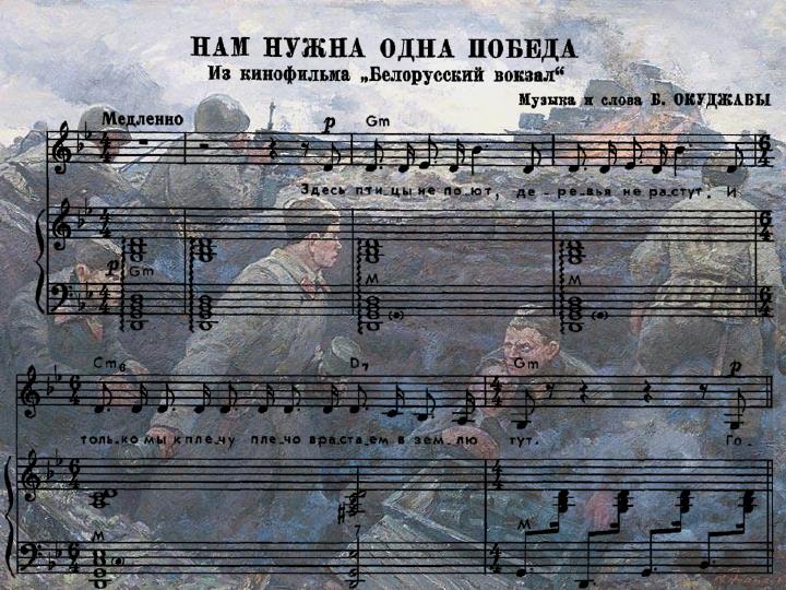 Текст песни «Нам нужна одна Победа», о которой сегодня пойдет речь, даёт возможность говорить о времени и месте описываемых в ней событий. Слова «От Курска и Орла» – это прямой отсыл к битве на Курской дуге в июле-августе 1943 года. Картина, нарисованная Окуджавой, удивительно точная, почти документальная... |