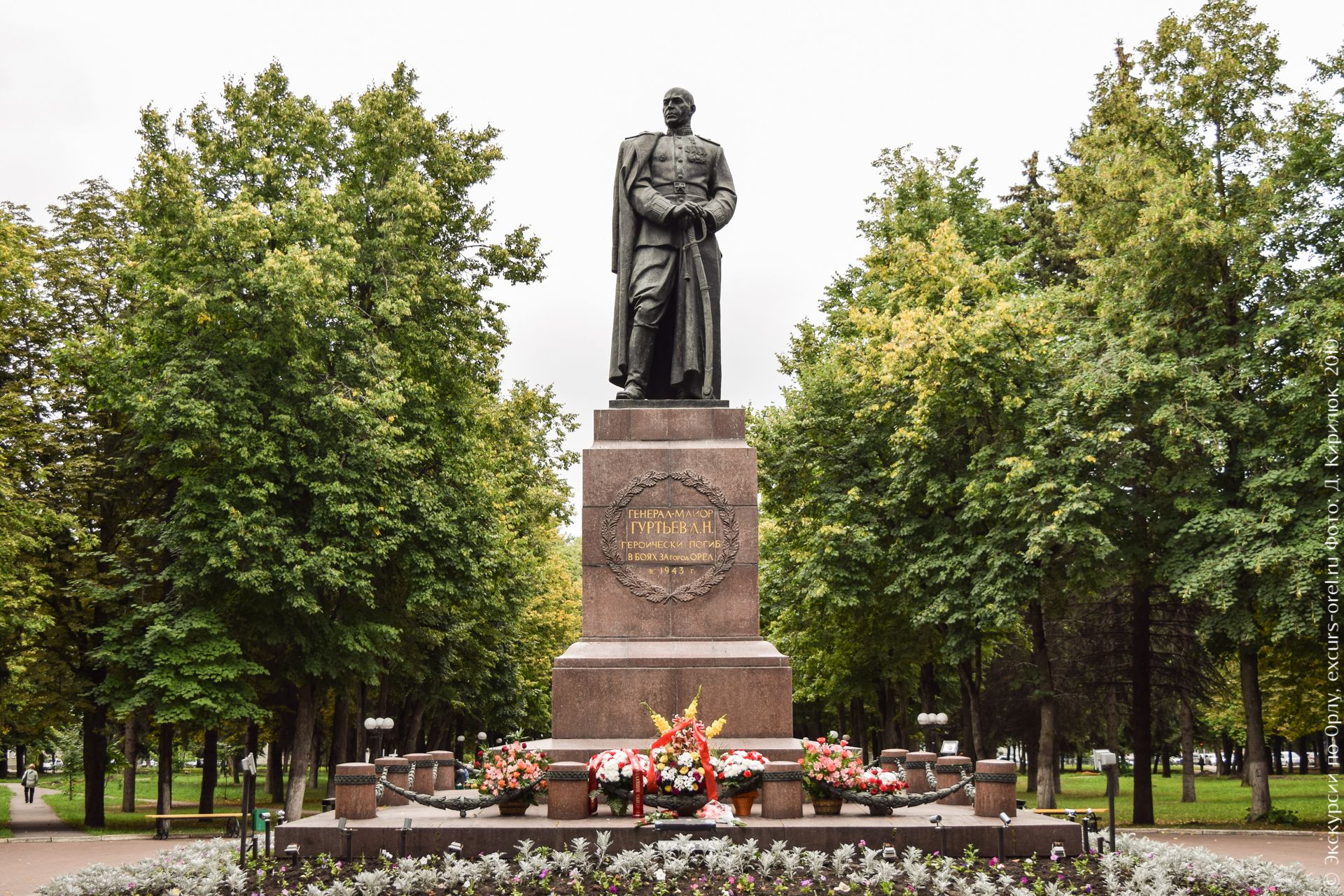 Леонтий Николаевич Гуртьев – Герой Советского Союза, генерал-майор, командир 308-й Сибирской стрелковой дивизии. Большой и долгий путь прошел Л. Н. Гуртьев со своей дивизией от Сталинграда до Орла. 3 августа 1943 года генерал был смертельно ранен, а 7 августа похоронен в Орле на братском кладбище, напротив городского парка. 5 августа 1954 года, на месте его захоронения, был открыт памятник генералу работы скульптора Е. В. Вутечича. В 1976 году памятник перенесен в сквер, носящий имя героя.
