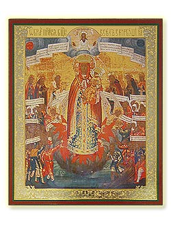 Главной святыней церкви считается икона Божией Матери «Всех скорбящих Радость». Она выносилась из храма во время всех городских крестных ходов, и была очень почитаема народом. Еще Илья Ливанский сообщает о нескольких случаях чудесных исцелений, связанных с иконой. Во время советских гонений на церковь она оказалась у прихожан. В 1990-е годы икону возвратил во вновь открывшийся храм церковный староста Иосиф Николаевич Калашников. В октябре 2004 года, днём, похитители смогли вынести икону из храма. Она была продана одному орловскому коллекционеру, который не был в курсе её происхождения. Когда он нашёл информацию об иконе на сайте Богоявленского собора, то вернул её в храм и стал его постоянным прихожанином.